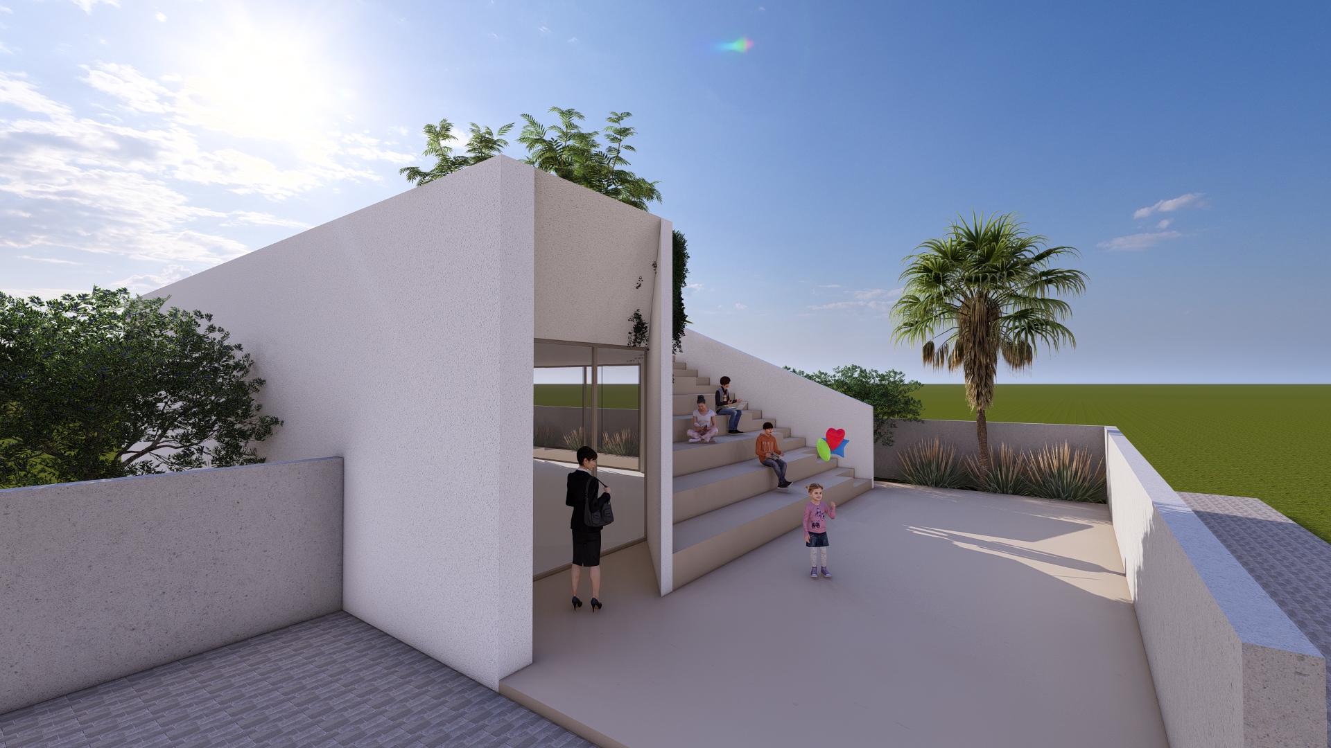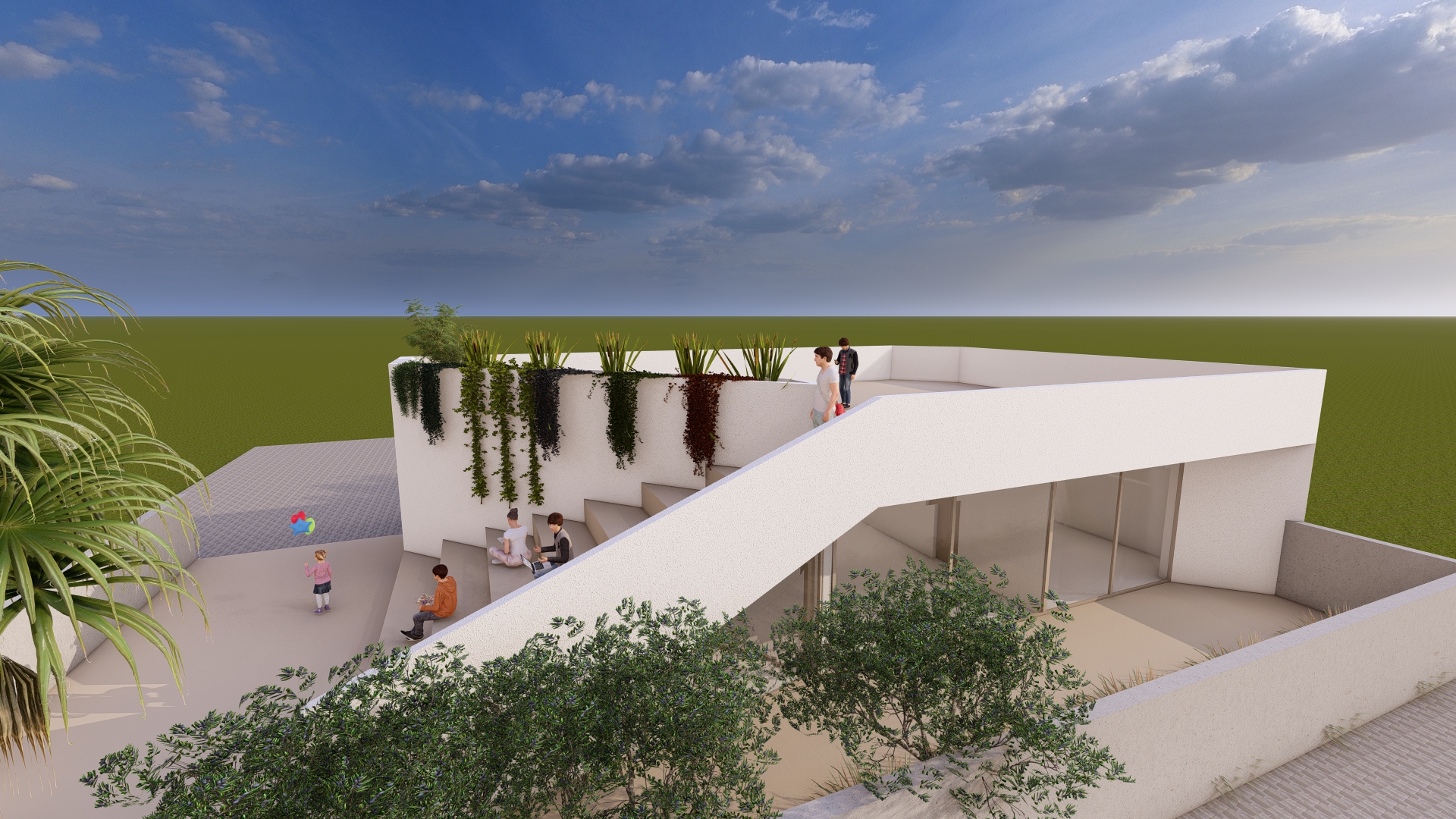 L’intervento riguarda la trasformazione di un edificio residenziale su un unico livello con terrazzo in un centro socio-educativo per bambini e ragazzi. Il progetto introduce una riduzione volumetrica dell’edificio, strategia che permette di ampliare e valorizzare gli spazi esterni, offrendo ambienti aperti per attività ricreative e una vista panoramica sul mare di Punta Braccetto.
